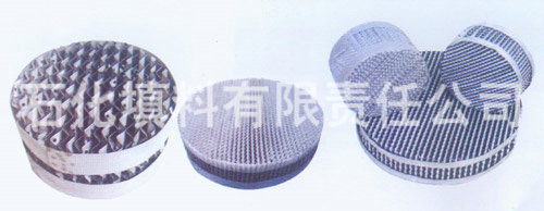 我公司生產(chǎn)的金屬規(guī)整填料包括孔板波紋填料、板網(wǎng)波紋填料、刺孔板波紋填料、絲網(wǎng)波紋填料及環(huán)形波紋填料。